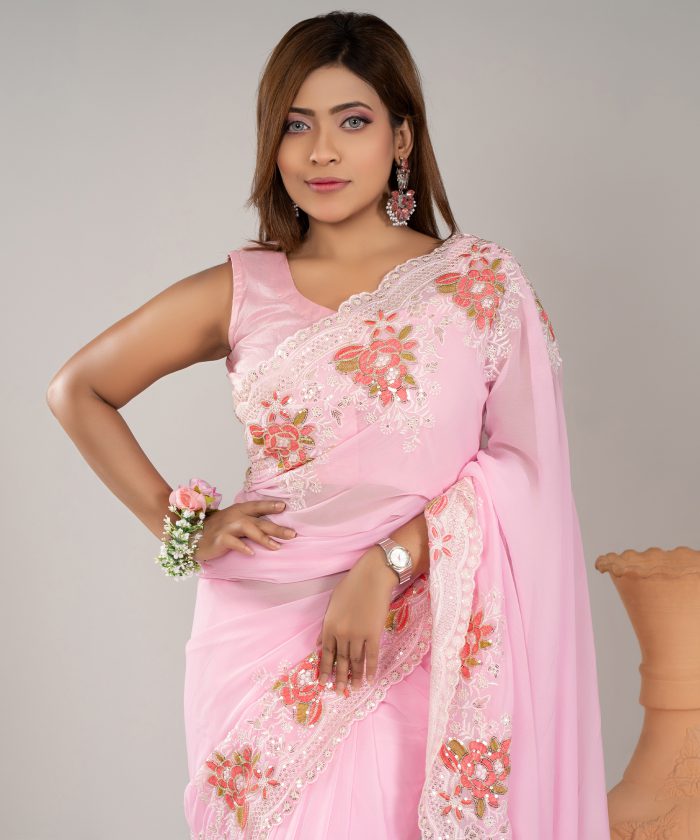 ওয়েটলেস সফট জর্জেট ফেব্রিকের এমব্রয়ডারি এবং সিকুয়েন্সের কাজ করা পার্টি শাড়ি