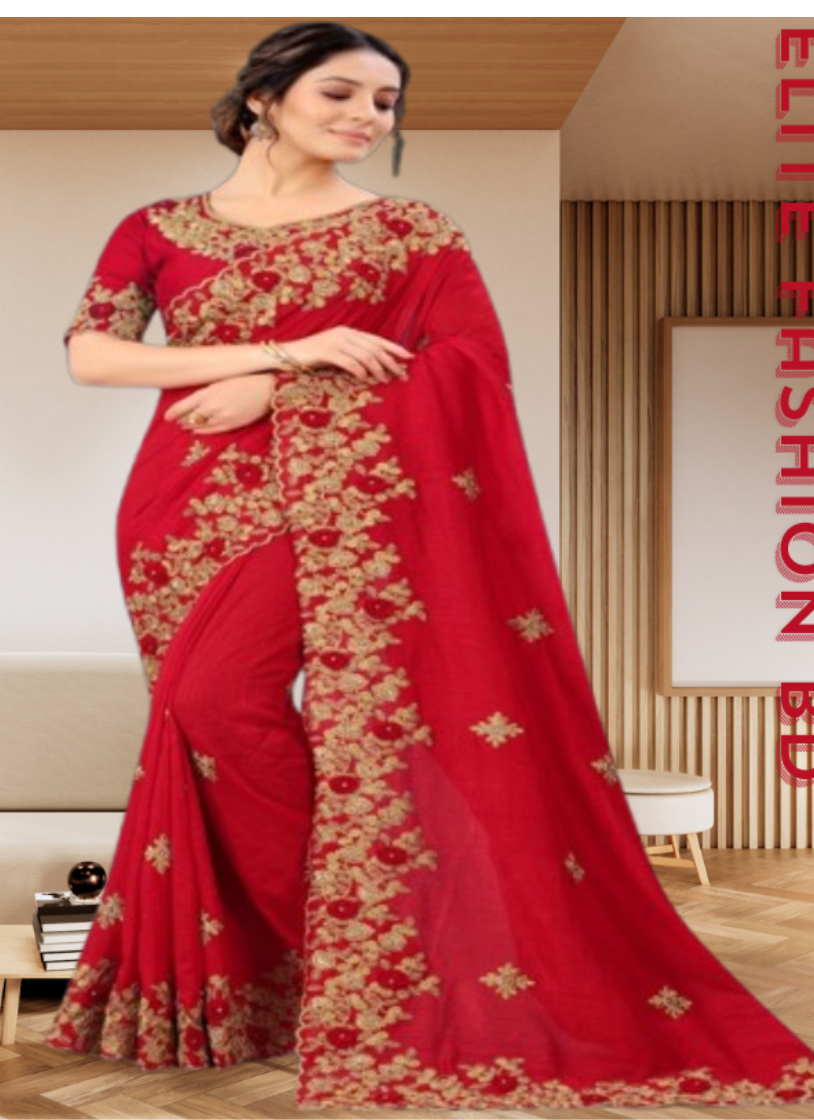 এক্সক্লুসিভ ইন্ডিয়ান ওয়েটলেস জর্জেট লাল এমব্রয়ডারি করা পার্টি শাড়ি